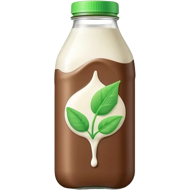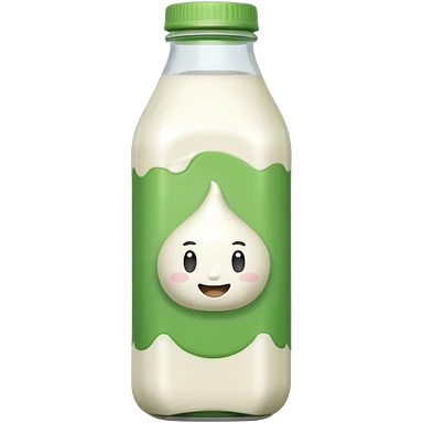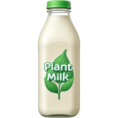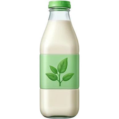 A 3D cartoon bottle of plant-based milk identical to dairy milk, small green tint or leaf mark, Memoji-style. emoji | AI Emoji Generator