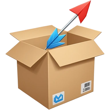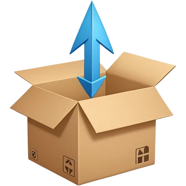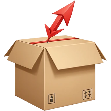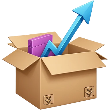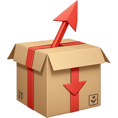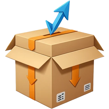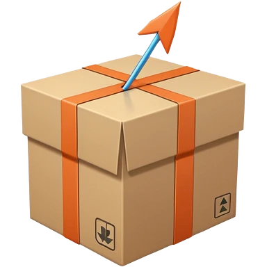 Minimal line-art icon of a shipping box with an arrow going up or a price tag, simple modern style, clean outlines, slightly 3D, no background, transparent, represents “reselling / e-commerce / flipping items” emoji