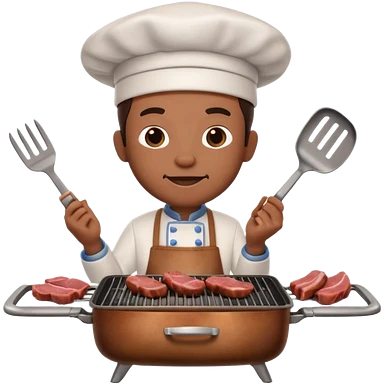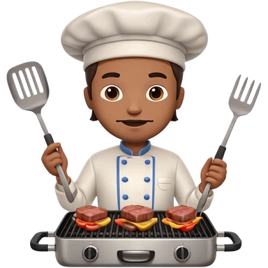 A 3D cartoon cook flipping meat on a grill with tongs, gentle smoke effect, Memoji-style lighting. emoji | AI Emoji Generator