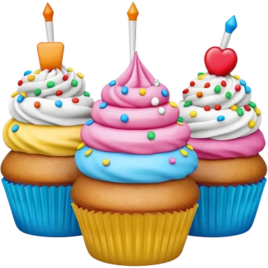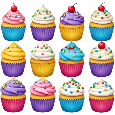 A 3D cartoon poster advertising cupcakes, with bright colors and clean typography, Memoji-style. emoji