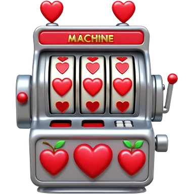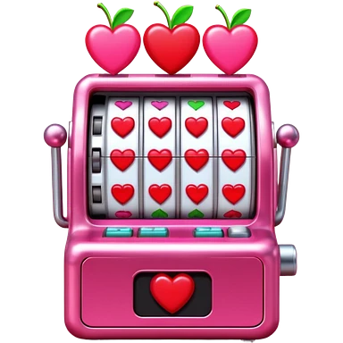 A 3D cartoon slot machine showing hearts and cherries, shiny metallic finish, Memoji-style realism. emoji