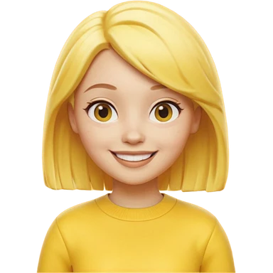A 3D cartoon female character fully in yellow tones — skin, hair, and outfit all yellow — smiling gently, medium-length hair, cinematic Memoji-style rendering, cohesive with other yellow character emoji | AI Emoji Generator