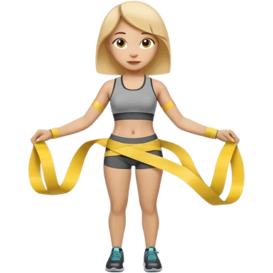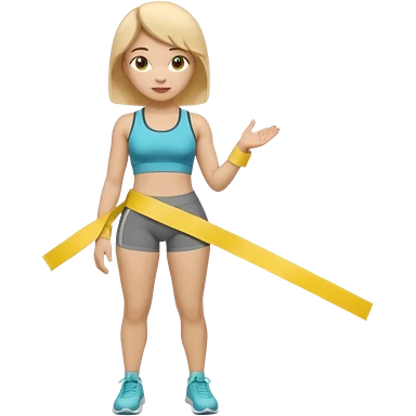 A 3D cartoon person measuring their waist with a yellow tape, casual fitness outfit, Memoji-style realism. close up. emoji