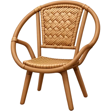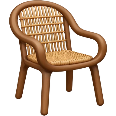 A 3D cartoon wooden chair with woven rattan seat, clean composition, bright background, Memoji-style rendering. emoji