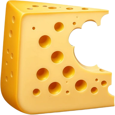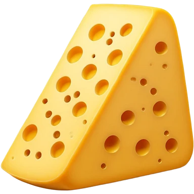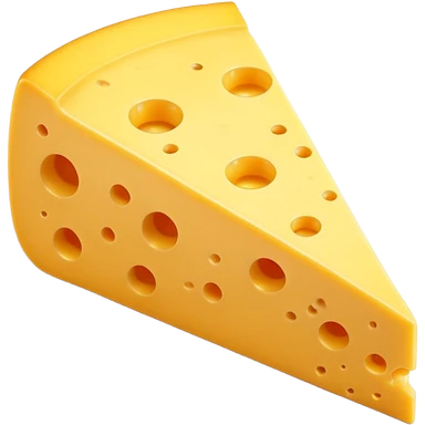 A 3D cartoon wedge of yellow cheese with round holes, bright tone, soft shadow, Memoji-style. emoji