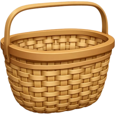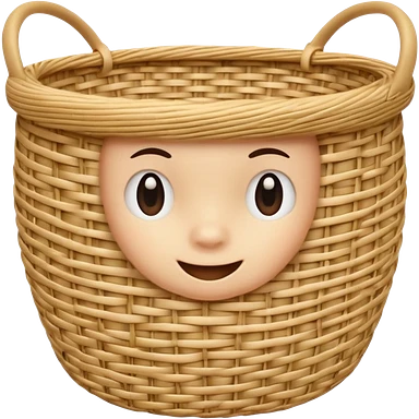 A 3D cartoon natural straw woven basket with detailed weave pattern, soft light, Memoji-style realism. emoji