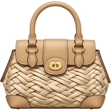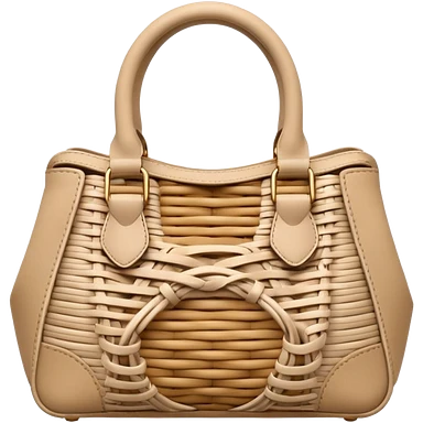 A 3D cartoon woven handbag with interlaced fiber details, neutral tones, Memoji-style realism. emoji