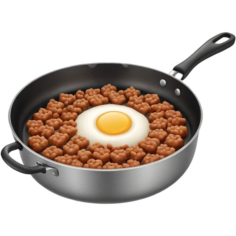 A 3D cartoon frying pan with minced meat being cooked, slight steam, realistic texture, Memoji-style. emoji | AI Emoji Generator