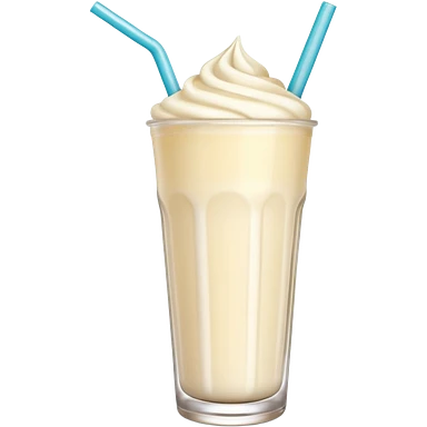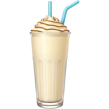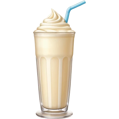 A 3D cartoon tall glass of vanilla milkshake with a straw, smooth creamy texture, light froth on top, subtle reflections, soft warm light, Memoji-style. emoji