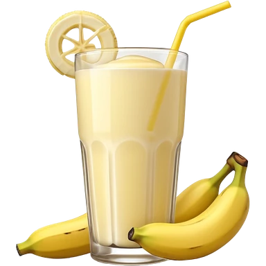 A 3D cartoon glass of banana shake, light yellow creamy texture, straw and banana slice garnish, glossy reflection, natural daylight, Memoji-style. emoji | AI Emoji Generator