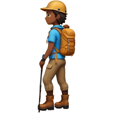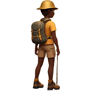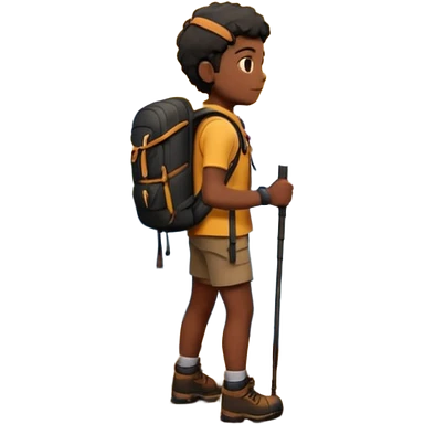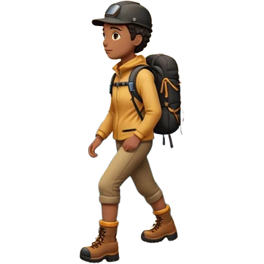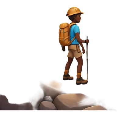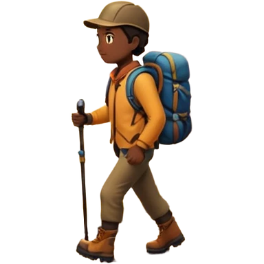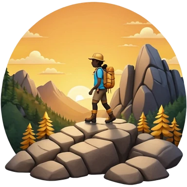 A 3D cartoon hiker silhouette standing on a rocky path at sunset, warm golden light, Memoji-style rendering. inside photo frame emoji | AI Emoji Generator