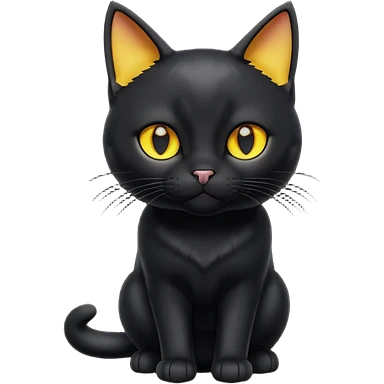 A 3D cartoon jet-black Bombay cat with glossy fur, bright golden eyes, dramatic contrast lighting, Memoji-style cinematic look. full body. emoji | AI Emoji Generator