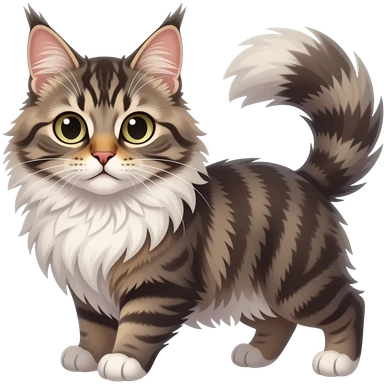 A large, fluffy Maine Coon cat with a wild mane, paws raised like a bear, cartoon style, transparent background. emoji