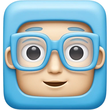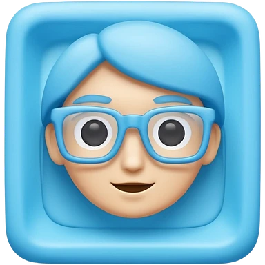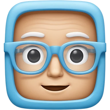 A 3D cartoon sky-blue square spectacle, slightly thick frame, glossy surface, minimal plain background, Memoji-style. emoji