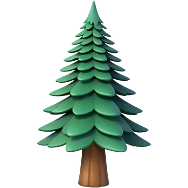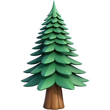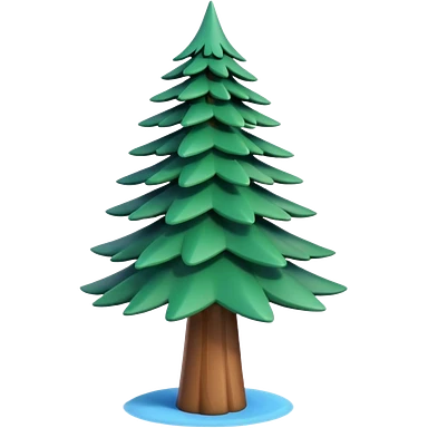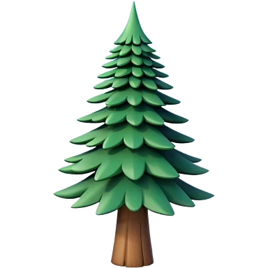 A 3D cartoon pine tree with layered green needles and tall conical shape, clear blue sky, Memoji-style rendering. emoji