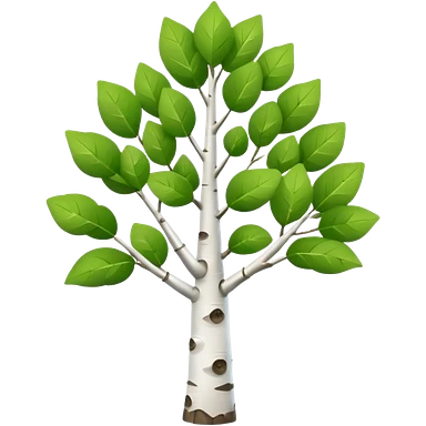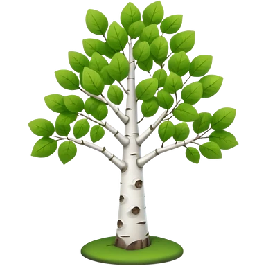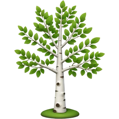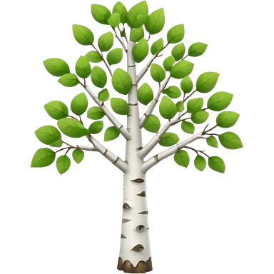 A 3D cartoon birch tree with white bark and small green leaves, gentle lighting, Memoji-style realism. emoji