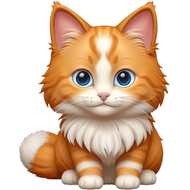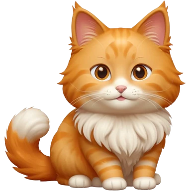 A 3D cartoon orange-ginger Ragdoll cat with gentle smile, fluffy tail, soft rim lighting, dreamy Memoji-style tone. emoji