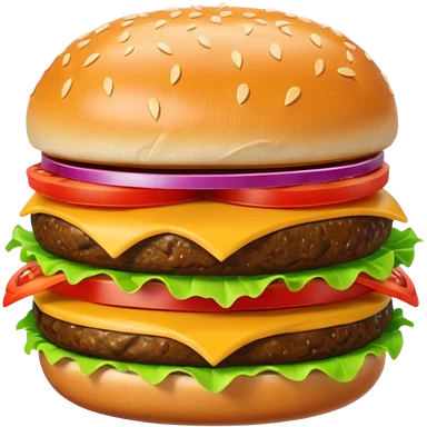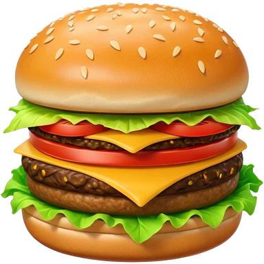 A 3D cartoon cheeseburger with lettuce, tomato, and sesame bun, soft texture, realistic Memoji-style rendering. emoji