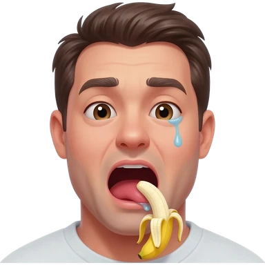 thirty year old guy with mouth wide open and lips around the tip of a peeled banana drooling from one side of his mouth and and tear in one eye emoji