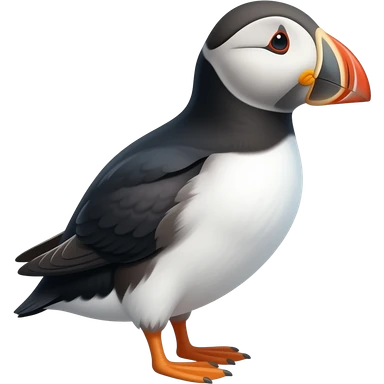 A 3D cartoon puffin bird standing on a rock near the sea, soft daylight, bright colors, realistic Memoji-style. emoji | AI Emoji Generator