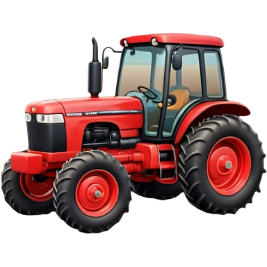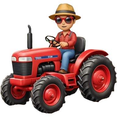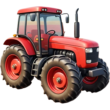 A 3D cartoon red tractor in a farmland setting, with plowed soil and crops in the background, smooth reflections, detailed tires, warm daylight, Memoji-style realism. emoji | AI Emoji Generator