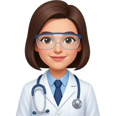 Design a 3D young scientist emoji like Apple Memoji: soft smiling, in a lab coat, with glasses. Simple lab setting. Use bright colors and soft edges. emoji