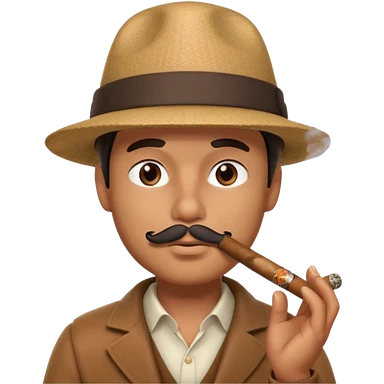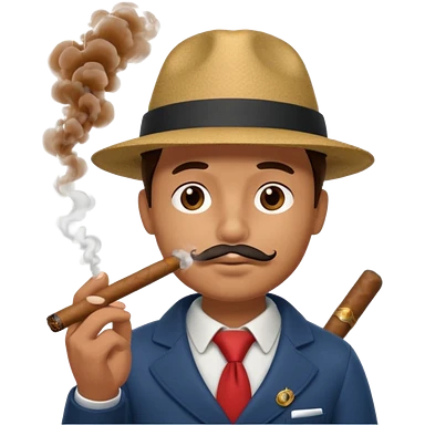 A 3D cartoon man wearing a hat, puffing cigar smoke, calm expression, soft lighting, realistic Memoji-style. emoji