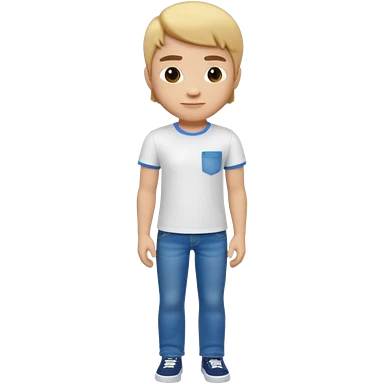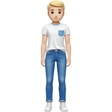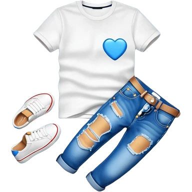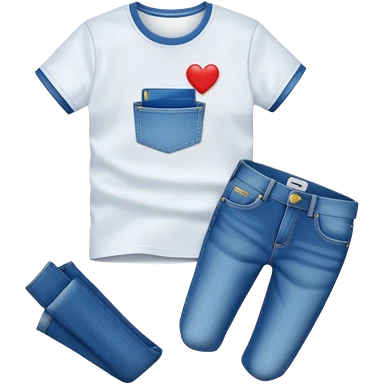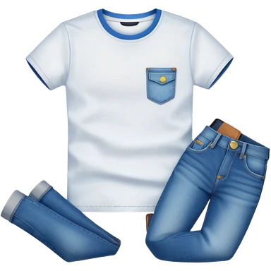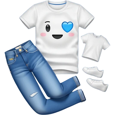 A 3D cartoon casual T-shirt and jeans outfit arranged on flat surface, bright lighting, Memoji-style realism. emoji