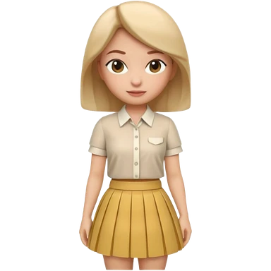 A 3D cartoon outfit with a blouse and skirt arranged together, clean background, natural light, realistic Memoji-style look. emoji