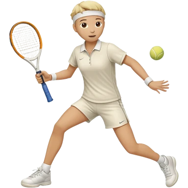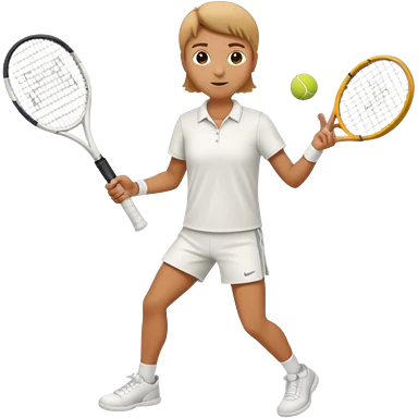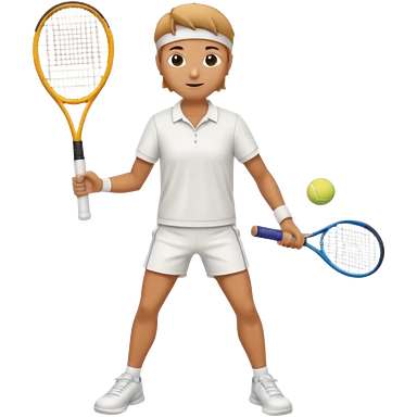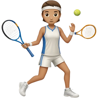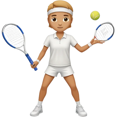 A 3D cartoon-style illustration of a male tennis player resembling Daniil Medvedev. He is wearing a white tennis shirt with a small logo, a white wristband, and holding a red and white tennis racket. His expression is serious and focused. He has short brown hair and a headband with a small red logo. The style is similar to an Apple emoji or Memoji character – clean, high-quality, slightly exaggerated facial features, and polished rendering. White background.