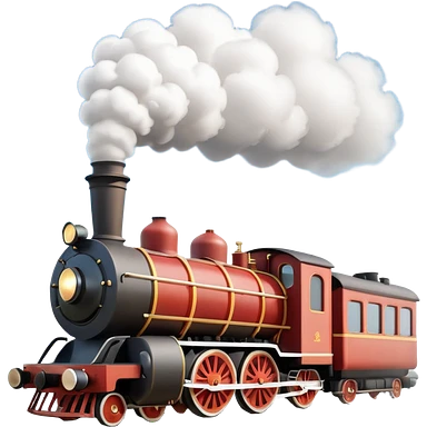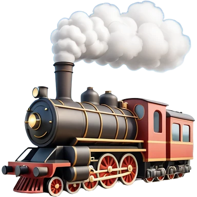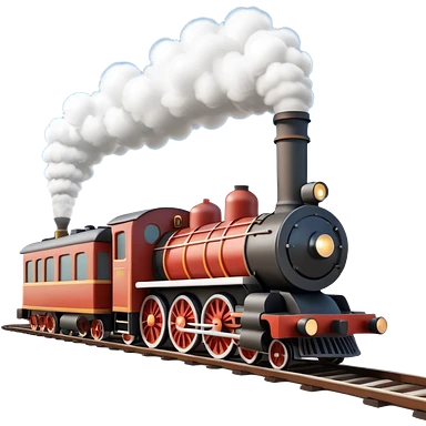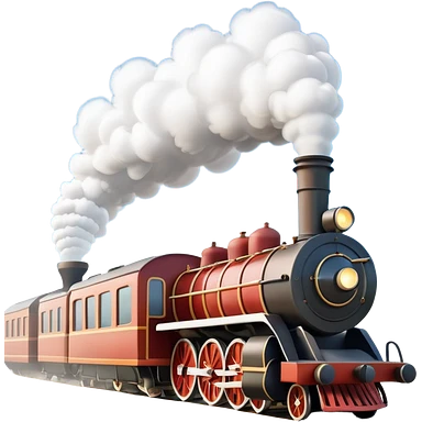 A 3D cartoon steam train puffing clouds of white smoke from its chimney, outdoor scene, warm sunlight, realistic Memoji-style. emoji
