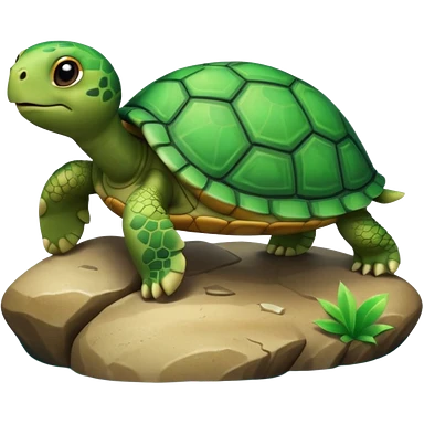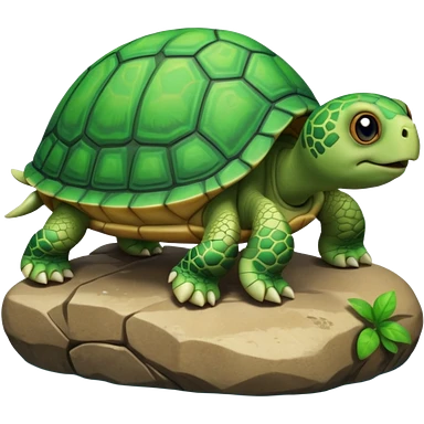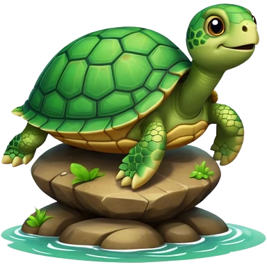 A 3D cartoon turtle climbing onto a rock near water, bright green shell, soft shading and smooth texture, cheerful and friendly expression. emoji | AI Emoji Generator
