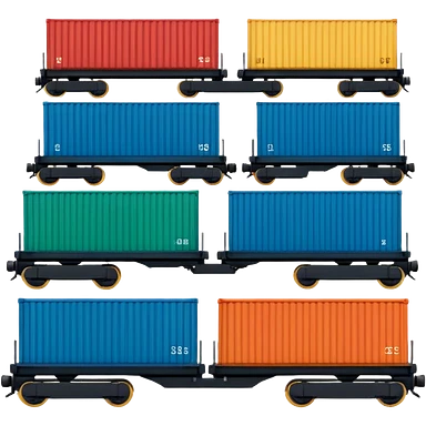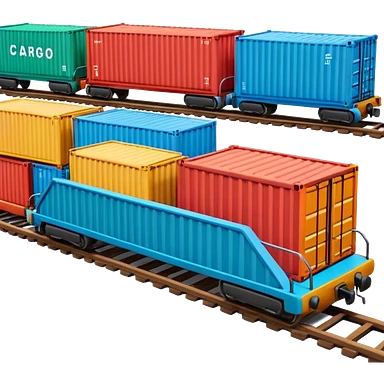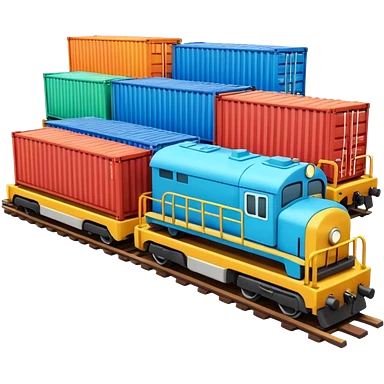 A 3D cartoon cargo train with colorful containers on flatbed cars, industrial background, Memoji-style realism. emoji