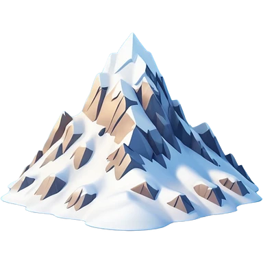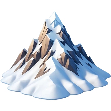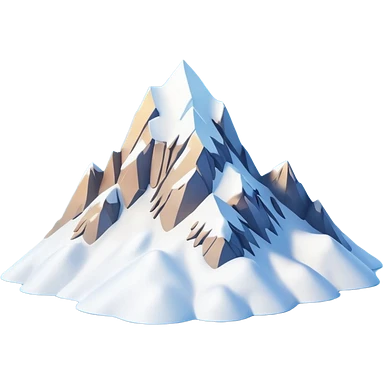A 3D cartoon snow-covered mountain peak with soft clouds around it, clear blue sky, bright sunlight, smooth textures, Memoji-style rendering. emoji