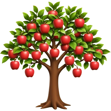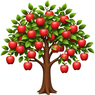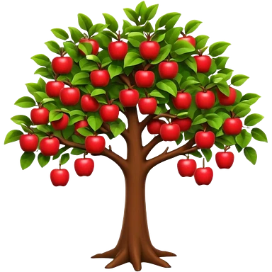 A 3D cartoon apple tree with red apples hanging from its branches, lush green leaves, bright daylight, Memoji-style realism. emoji
