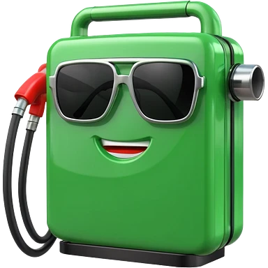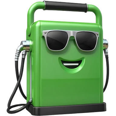 A 3D render of a green rectangular fuel pump as an inanimate object, with black sunglasses placed on its upper front panel. No face, no eyes, no character features, no anthropomorphism. Industrial product style. Clean lighting. Isolated on transparent background.emoji