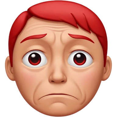 passport photo of a sad clown emoji, white face paint, red nose, classic makeup with frown and drooping eyebrows, multiple tears, short tufted faded red hair, polka-dotted costume in muted tones, glossy 3D look, centered, white background emoji