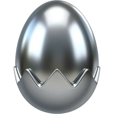 A 3D Y2K-style egg made of liquid chrome and polished silver. Sharp edges with a high-gloss metallic finish reflections. Minimalist, futuristic, and moody emoji