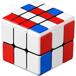 A 3x3 Rubik's Cube slightly turned, with only red, blue, and white colored squares, minimalist iOS emoji style emoji