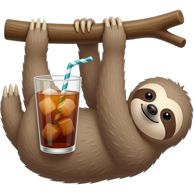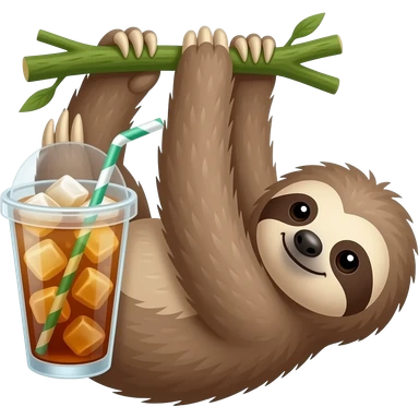 A sloth hanging with iced tea emoji