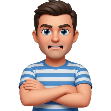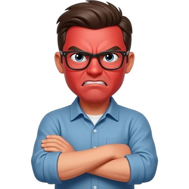 A mad emoji with arms crossed and red face emoji