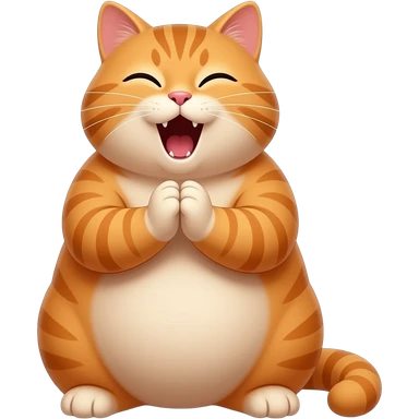 A fat orange cat joins both front feet in prayer and say aameen emoji