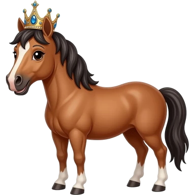 a smiling horse heard wearing a crown with sparkling jewels emoji