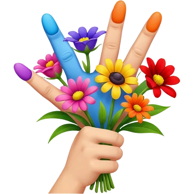 A bouquet of flowers with middle fingers replacing the flowers emoji