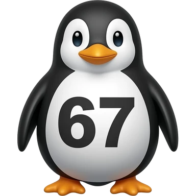 A penguin that has 67 on it emoji