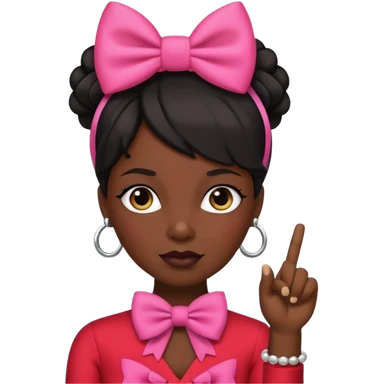 A diva with pookie bow on the top left side with clockit finger emoji