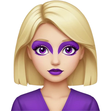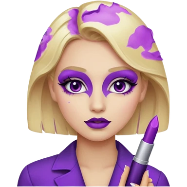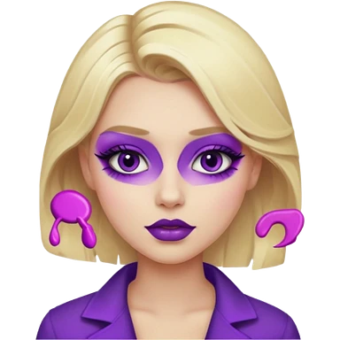 A blonde girl wearing a purple makeup emoji