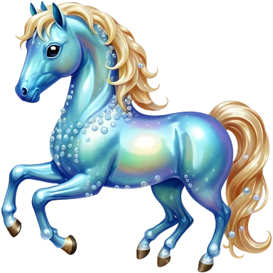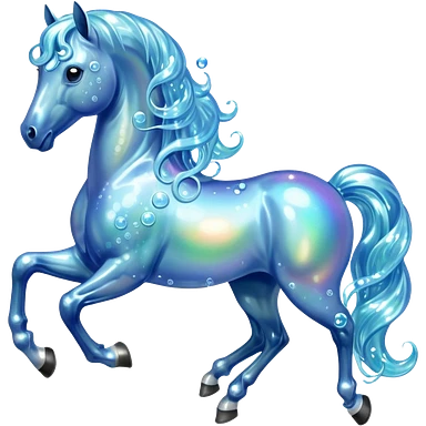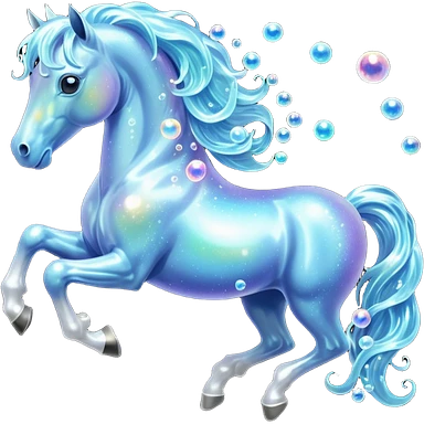 A magical horse made entirely of transparent bubbles and water, with a flowing mane of small bubbles emoji