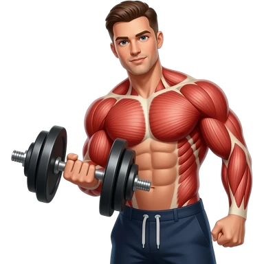 a shirtless buff man doing a Dumbbell Row emoji