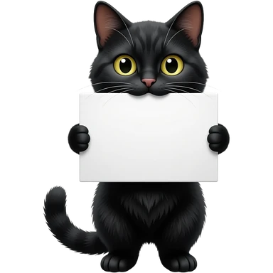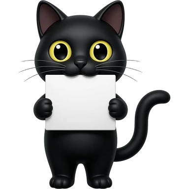 a black cat holding a white sign with its mouth emoji